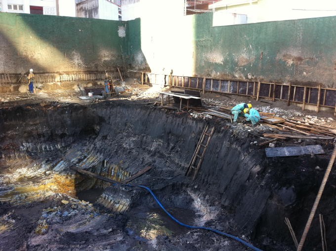 | - Foto em 20/04/11 - Escavação para a cota de apoio das sapatas. | |