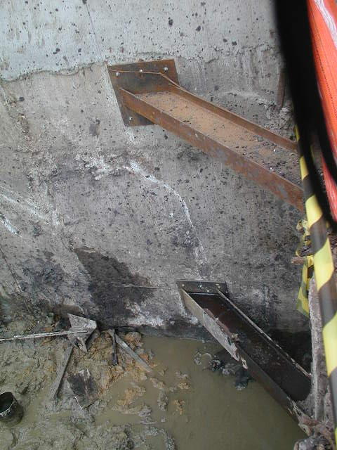 - Foto em 01/03/11 - Escavação para execução da 2a.linha de tirantes. |