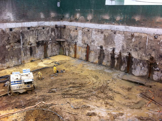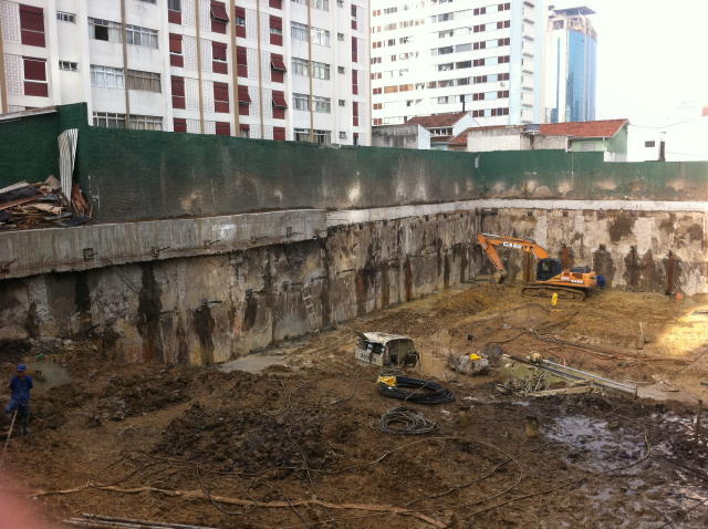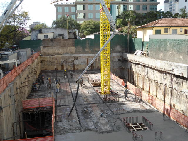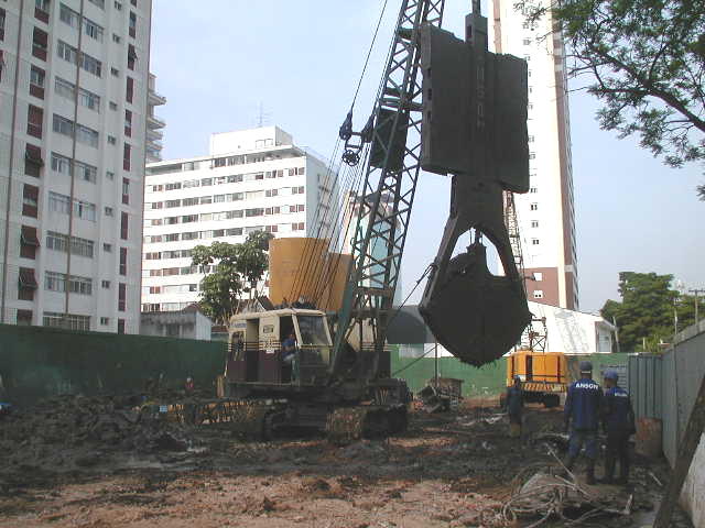 | - Foto em 25/11/10 - Escavando a parede diafragma junto a Rua Benedito Lapin. | |