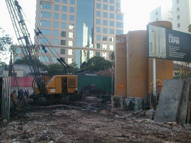 | - Foto em 19/11/10 - Escavando a parede diafragma junto a Rua Benedito Lapin. | |