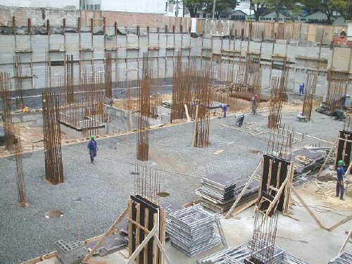 | - Foto em 23/05/03 - Sapatas concretadas. Serviços de compactação e drenagem de piso. | |