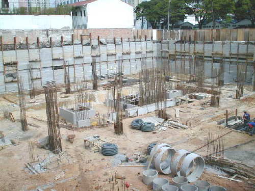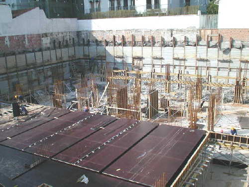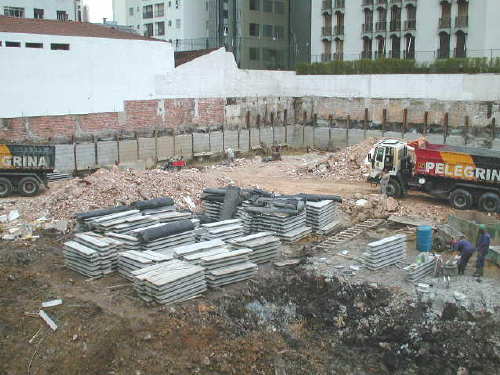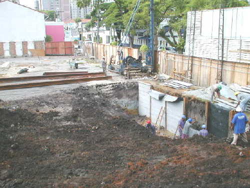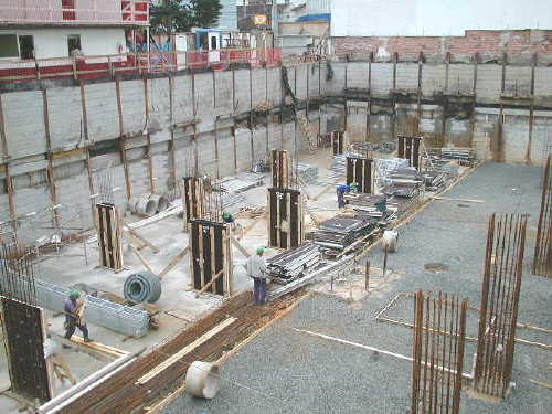 | - Foto em 01/04/03 - Escavação e cortinas chegando ao 2o.Sub-Solo. | |