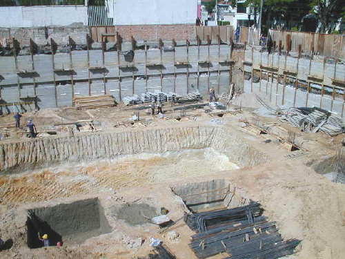 | - Foto em 24/03/03 - Protensão dos tirantes e escavação do 1o.Sub-Solo. | |