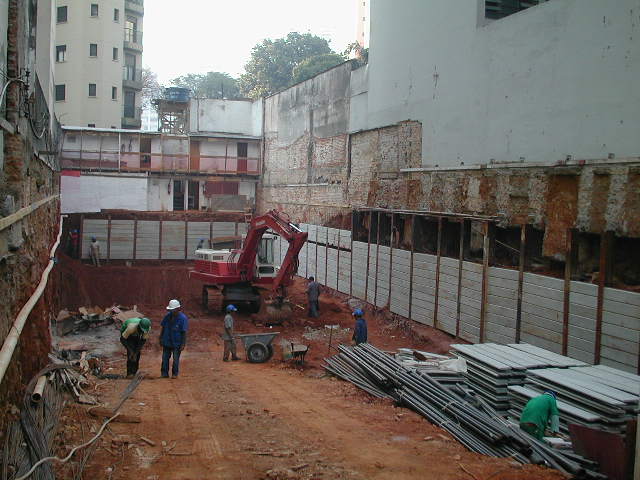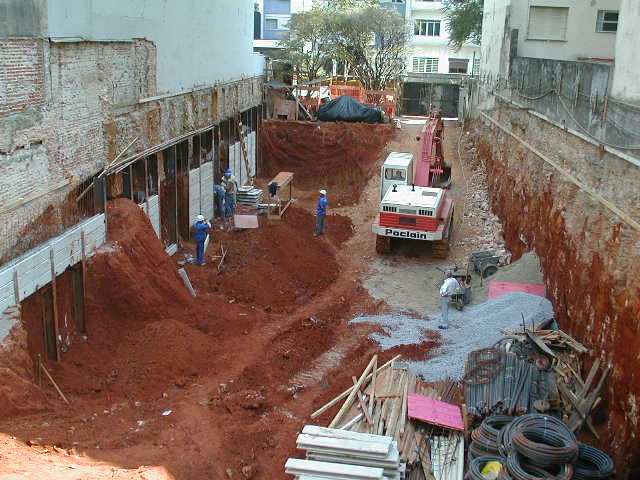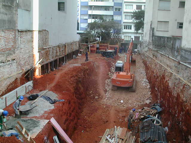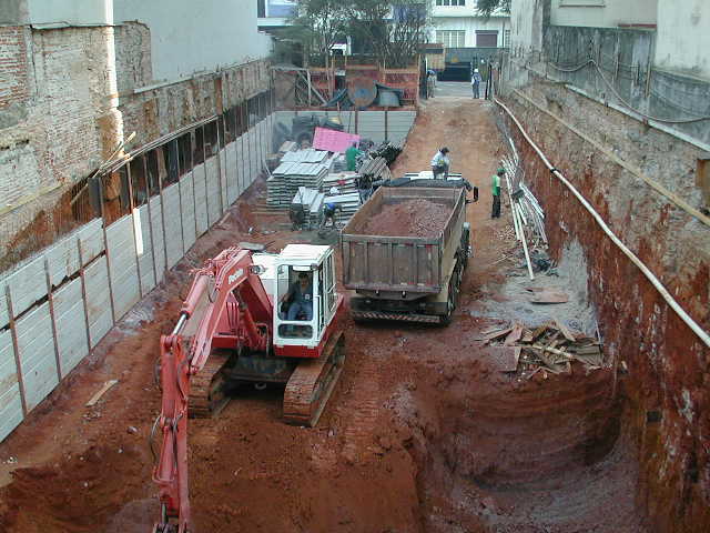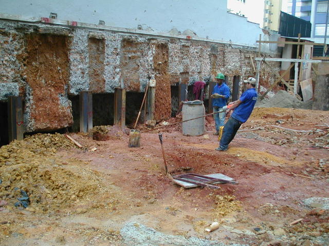Foto em 12/08/10 - Escavação e montagem das cortinas do