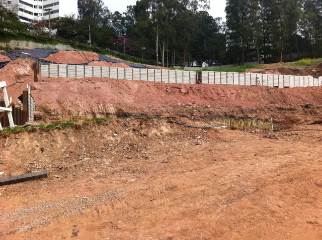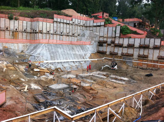 | - Foto em 13/09/11 - Atirantamento da 1a linha e escavação para a 2a.linha de tirantes. | |