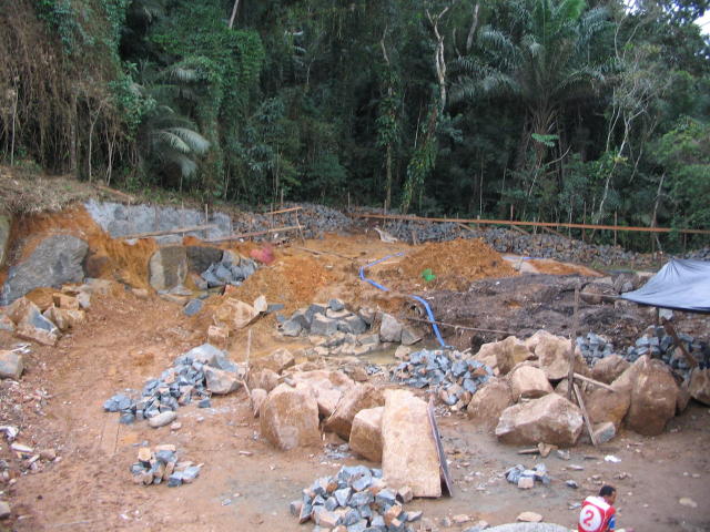 | - Foto em 20/08/06 - Remoção das rochas, e liberação do canteiro para execução da fundação. | |