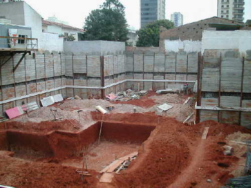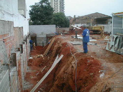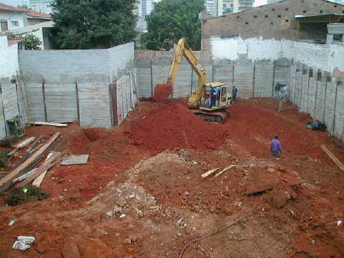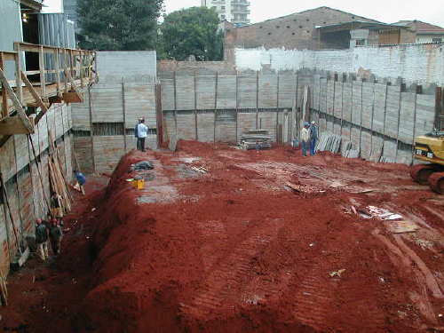 - Escavação até o 1o. Sub-Solo, com a cortina já