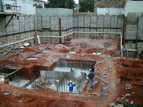 em 15/08/01- Piso do 2o.Sub-Solo concluído. Subindo pilares.