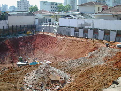| - Foto em 10/09/04 - Seguindo escavação e contenção dos vizinhos. | |