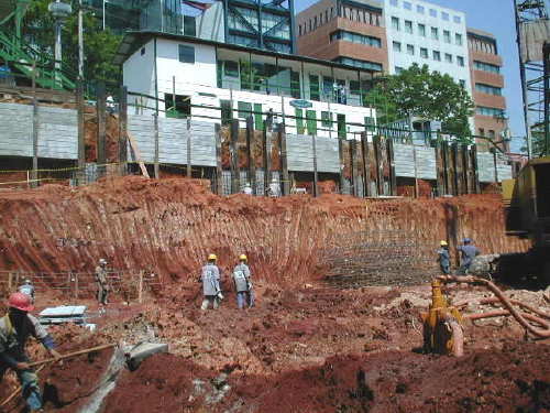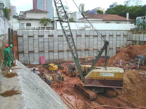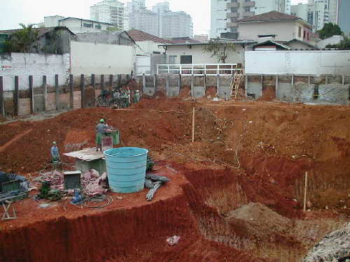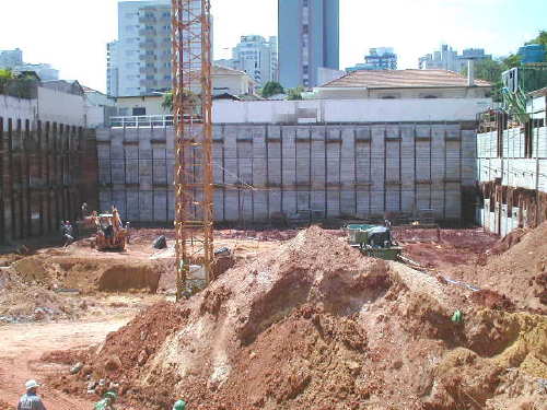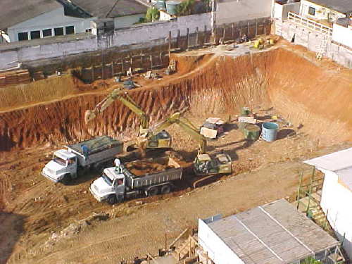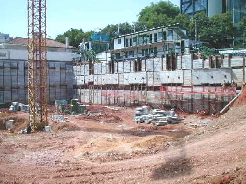 | - Foto em 03/09/04 - Andamento dos serviços de contenção e escavação. | |