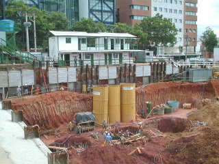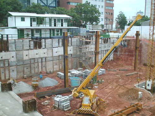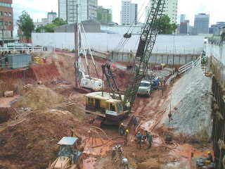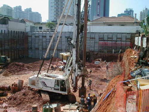| - Foto em 07/10/04 - Fundação em estacas de lama em andamento. | |