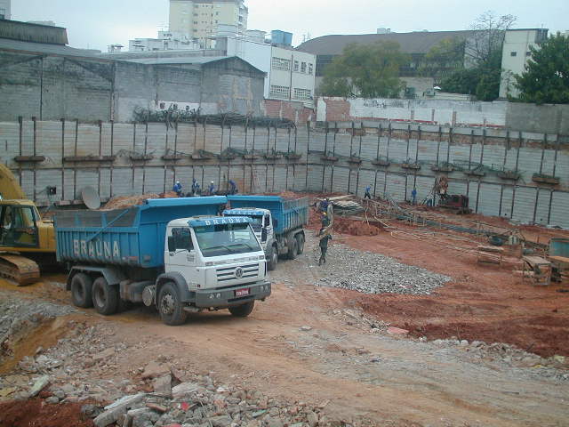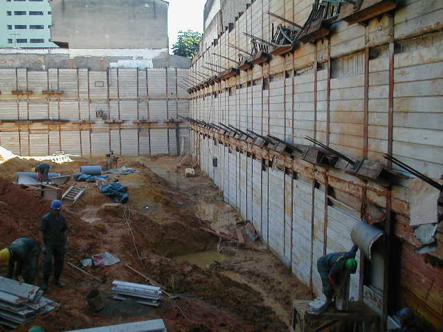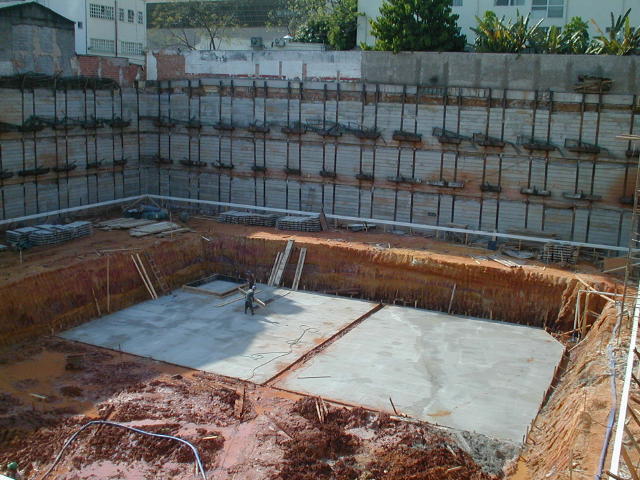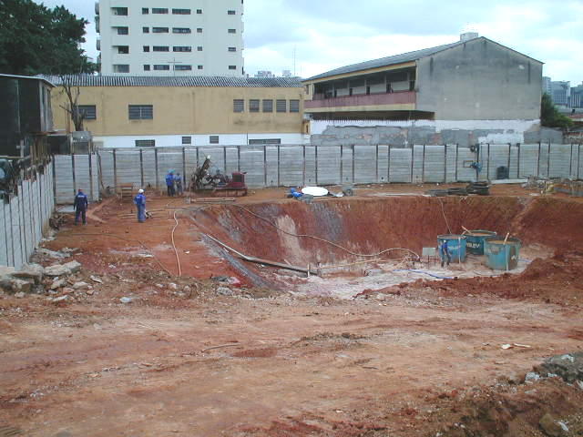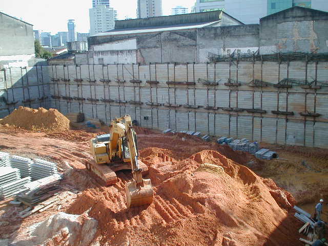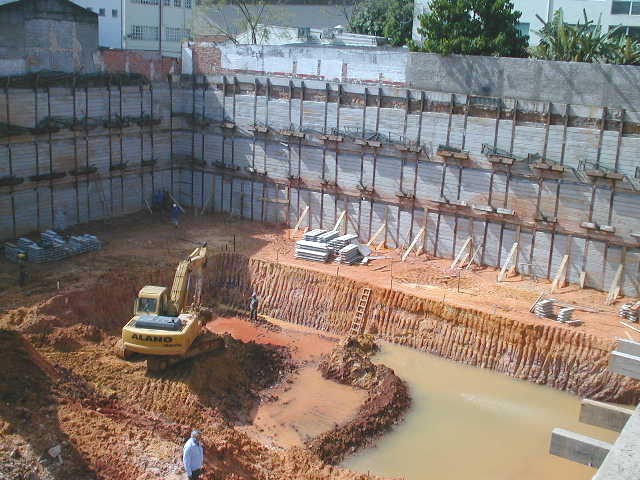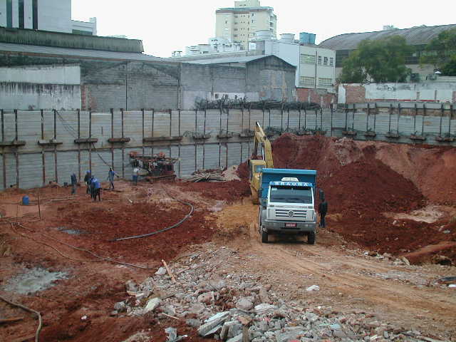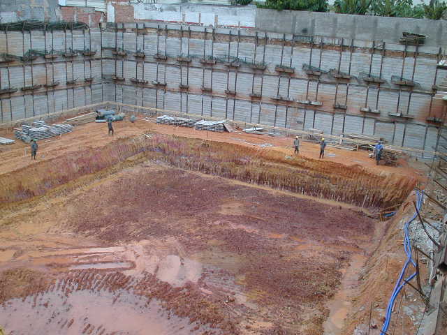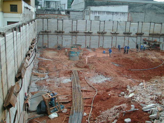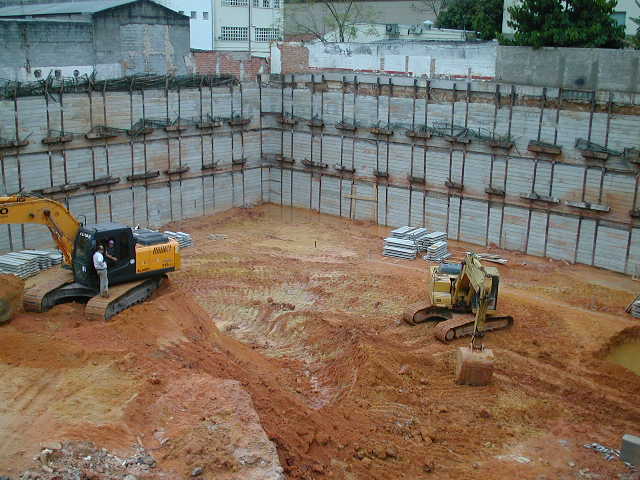 | - Foto em 11/06/2010 - Escavação atingindo o 2o.SS. Em andamento 2a.linha de ancoragens. | |