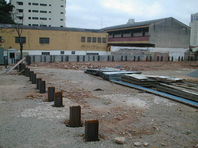 | - Foto em 26/01/2010 - Cravação dos perfis metálicos na periferia. | |