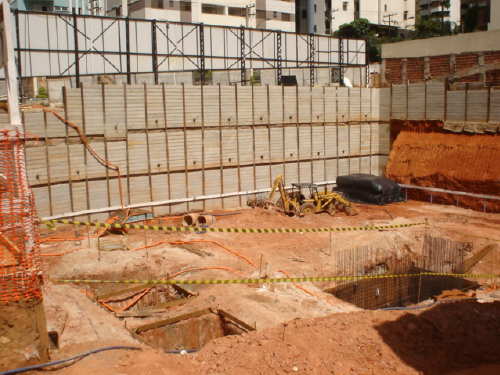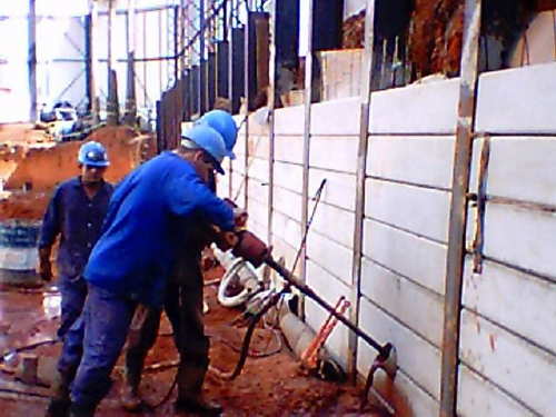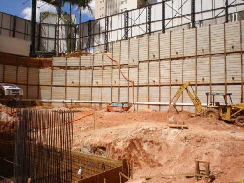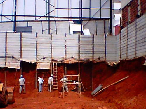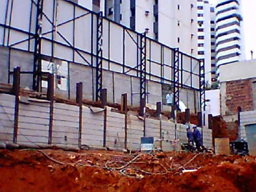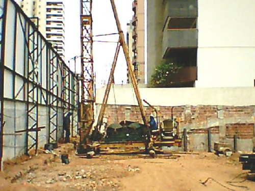 | - Foto em /12/04 - Perfuração dos tirantes. | |