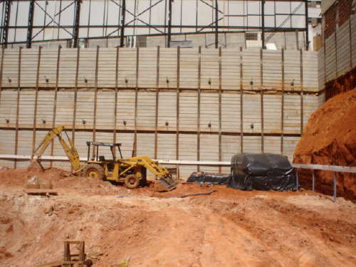 | - Foto em /12/04 - Escavando para execução da cortina com placa-dupla. | |