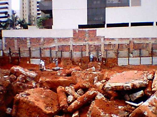 | - Foto em 07/03/05 - Escavando sapatas de fundação. | |