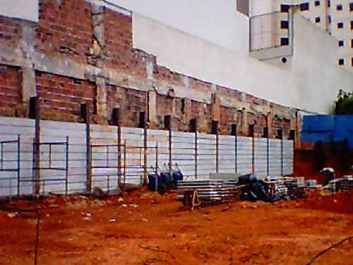 | - Foto em 07/12/04 - Cravando perfis metálicos na periferia. | |