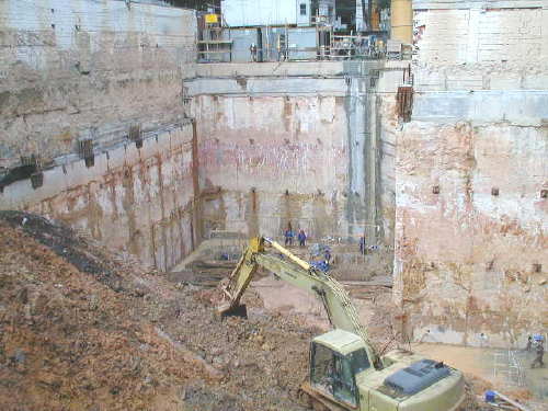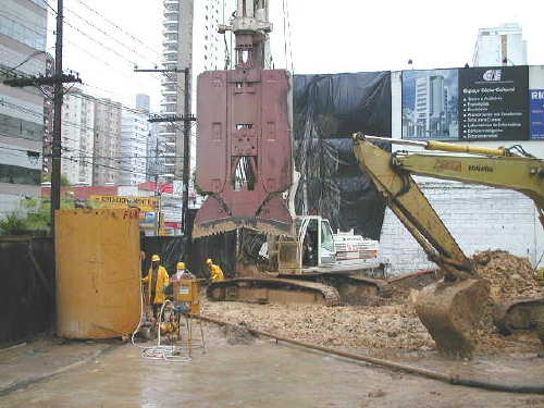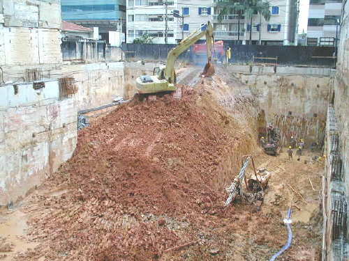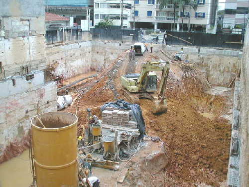 | - Foto em 12/02/04 - Escavando parede diafragma na divisa lateral esquerda. | |