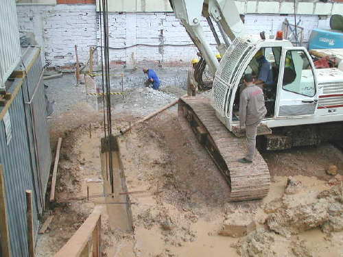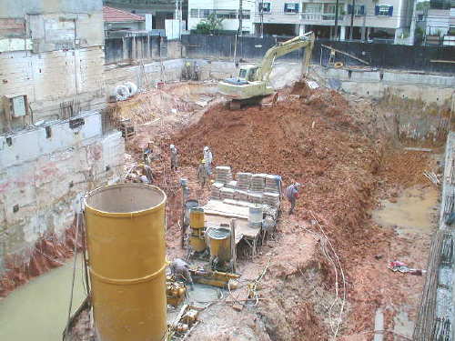| - Foto em 25/06/04 - Escavando sapatas do elevador. | |