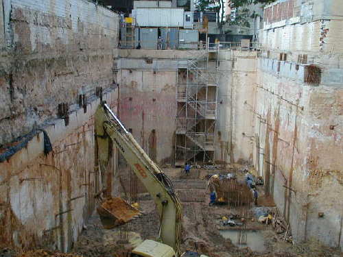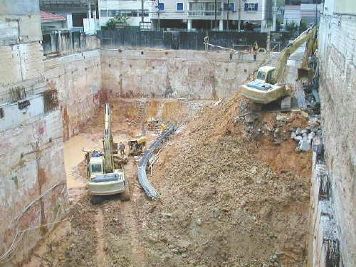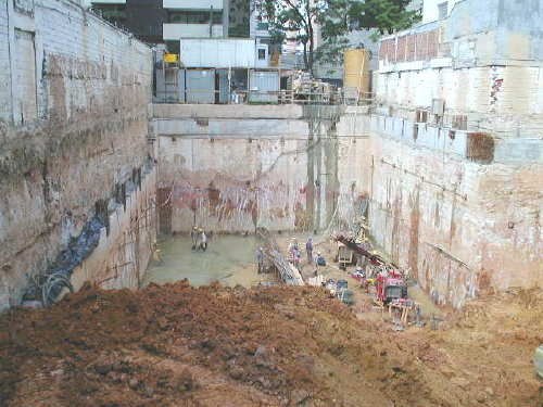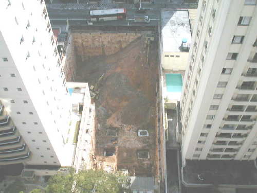 | - Foto em 07/06/04 - Vista superior da obra. Escavações no 4o.SS. | |