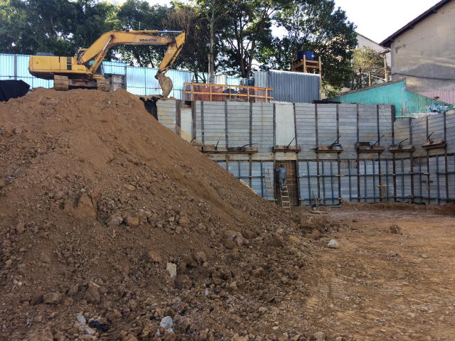 | - Foto em 05/06/2018 - Escavação concluída, e montando cortinas do 2o.SS. | |