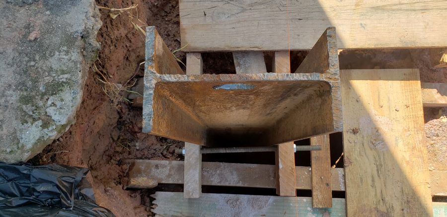 | - Foto em 15/04/2025 - Detalhe do sistema de implantação dos perfis nos tubulões. | |