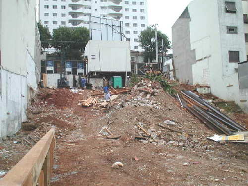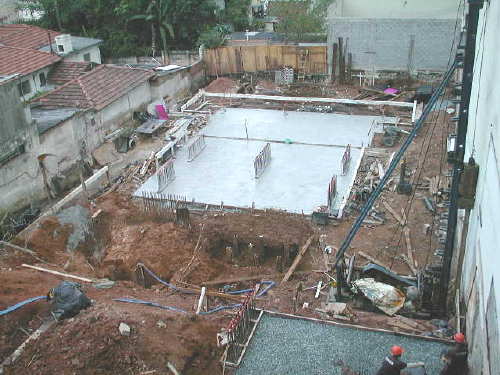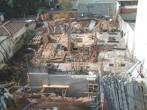 | - Foto em 26/06/03 - Cravação concluída e iniciando laje do 2o.SS. | |