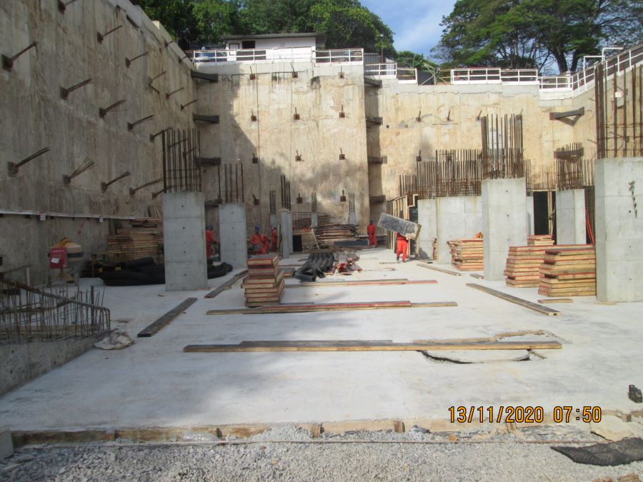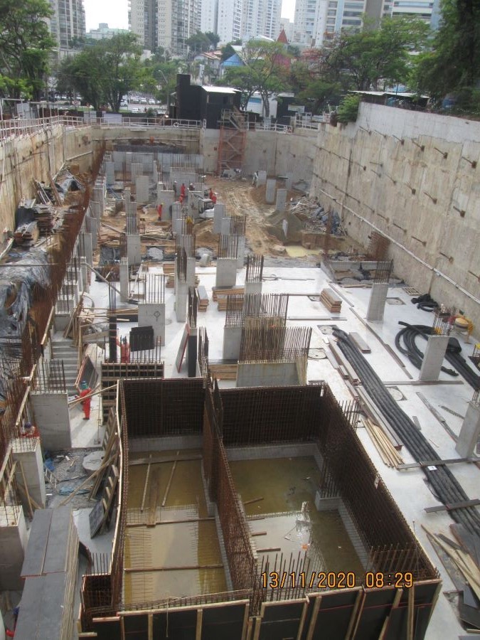 | - Foto em 13/11/2020 -Piso do 3o.SS junto a Torre A concluído e subindo estrutura. | |