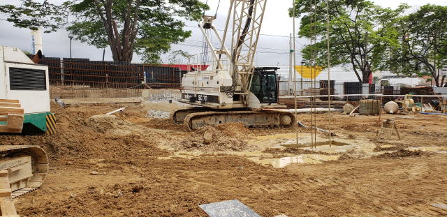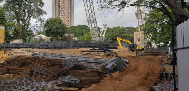 | - Foto em 25/09/2019 - Escavação das fundações da Torre 1 em estacas Barrete | |