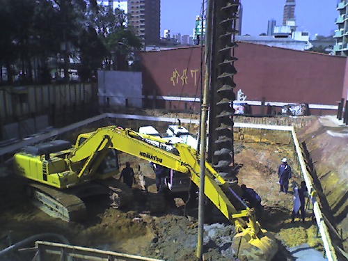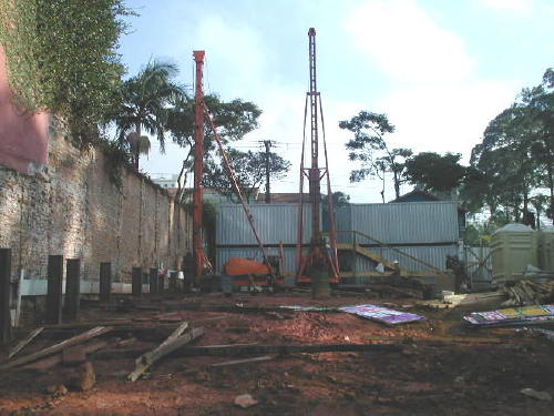 | - Foto em 23/08/2006 - Execução da fundação em estacas Hélice-Continua. | |