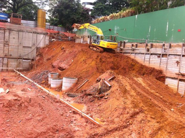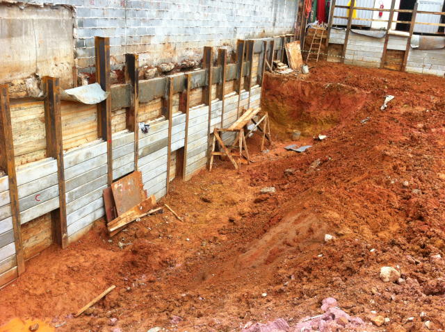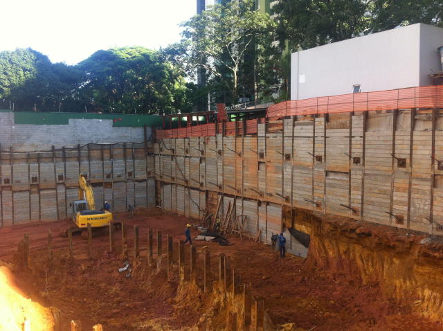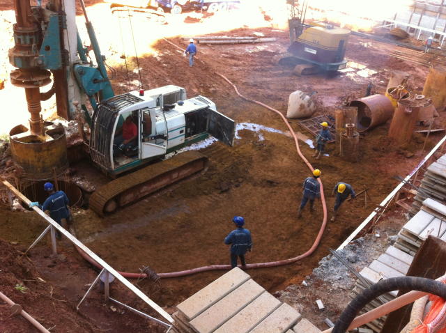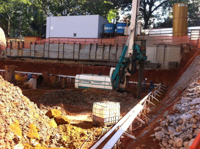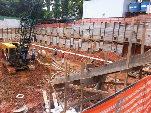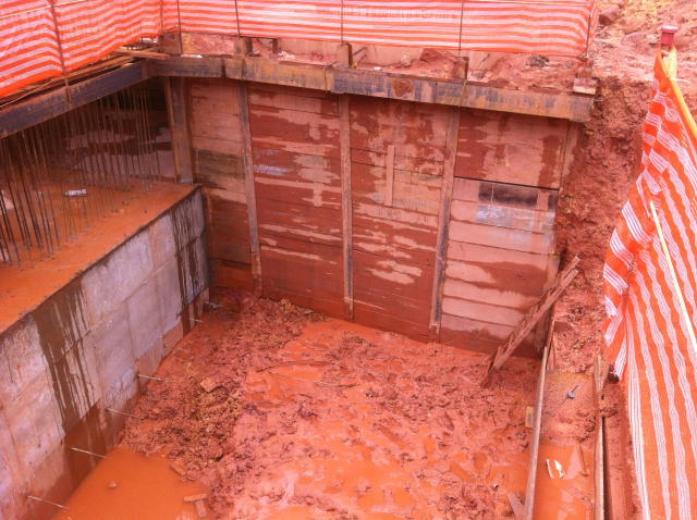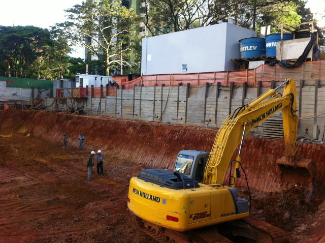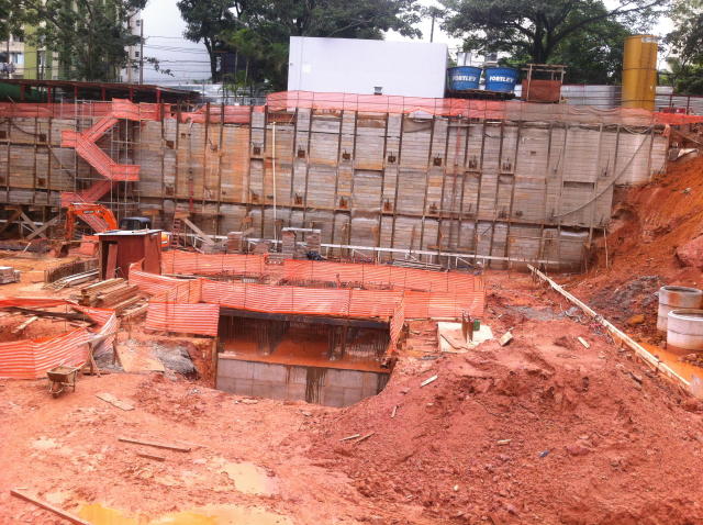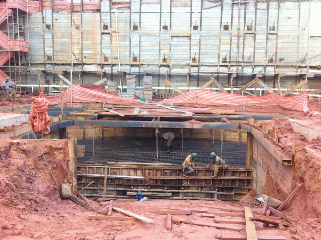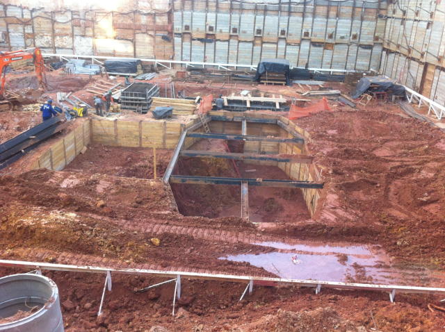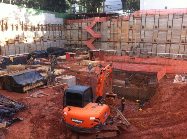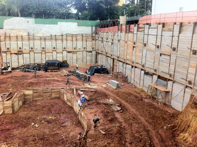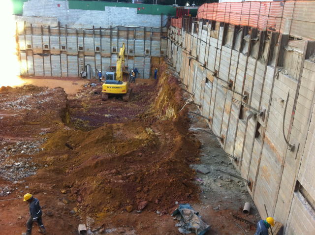 Foto em 13/02/2014 - Escavação interna da caixa dos elevadores,