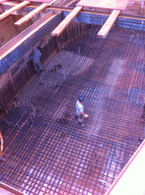 Foto em 27/02/2014 - Armação do bloco da caixa dos elevadores. |