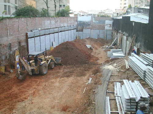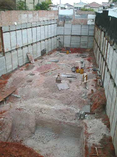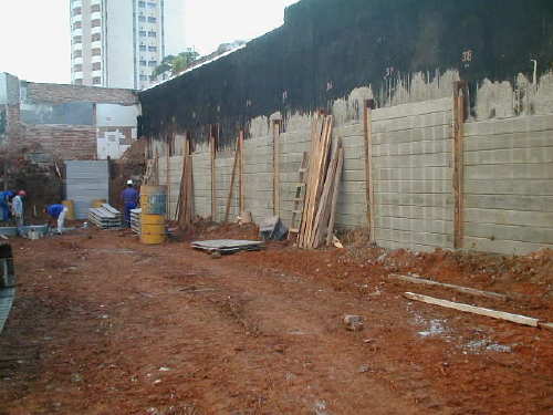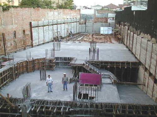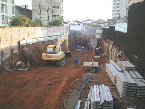 | - Foto em 16/08/02 - Fundos e lateral esquerda concluídos até o 1o.Sub-Solo. | |