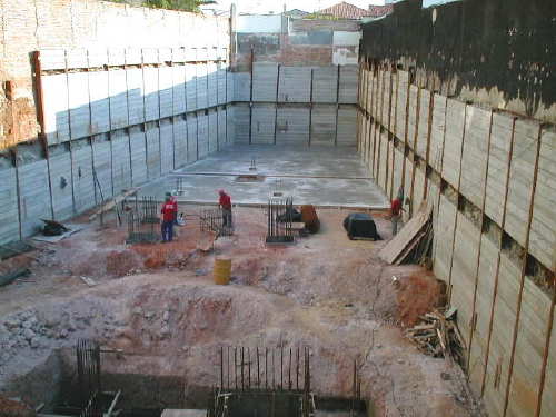 | - Foto em 13/08/02 - Instalando placas para o 1o. Sub-Solo | |