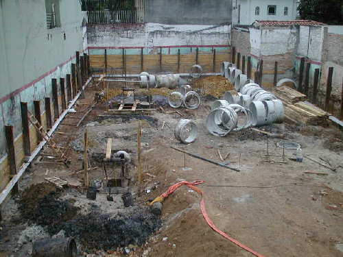 Foto em 20/06/01 - Preparando os tubulões de fundação. (revestidos com camisa de concreto)