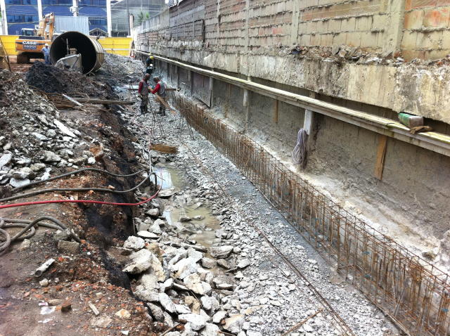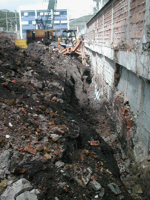| - Foto em 14/03/2011 - Escavação para a 2a linha de tirantes provisórios. | |