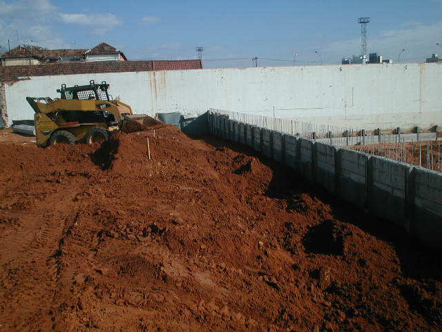 | - Foto em 25/05/2010 - Reaterro das cortinas, para atingir a cota do Térreo, no trecho das Torres. | |