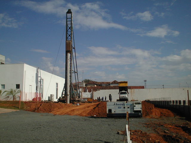 | - Foto em 09/06/2010 - Cravando estacas na Torre 2 e edifício Garagem. | |