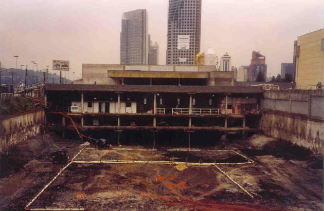 | - Foto em junho 1999 - Trecho da garagem sobre perfis provisórios, instalação do rebaixamento. |