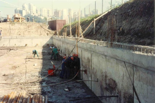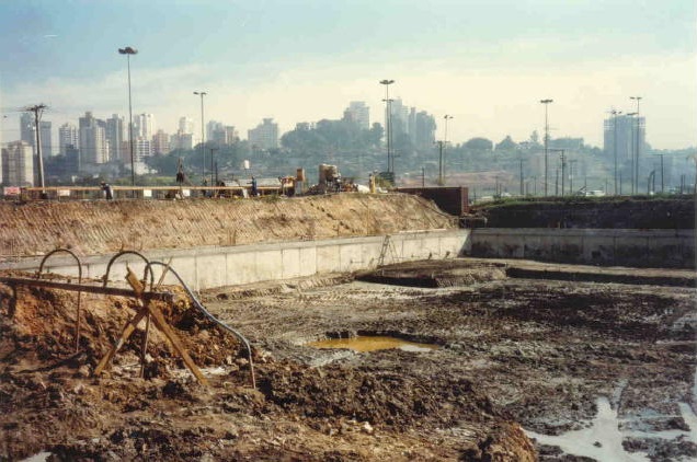 | - Foto em junho 1996 - Parede diafragma Pré-Moldada concluída. |