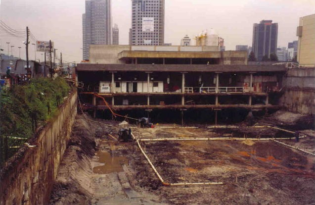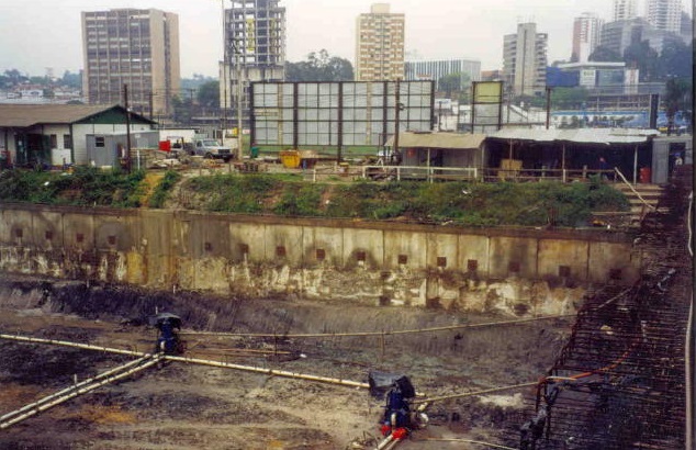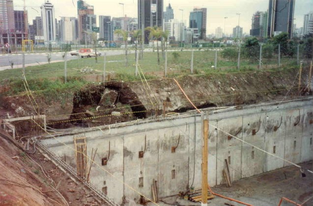| - Foto em julho 1996 - Execução dos tirantes da 2a.linha - Fundos |
