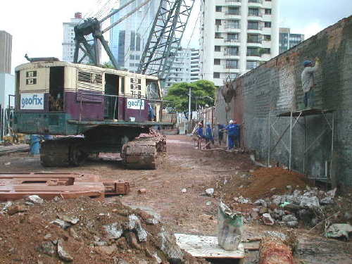| - Foto em 17/02/05 - Prosseguindo com escavação da parede diafragma na lateral esquerda. | |