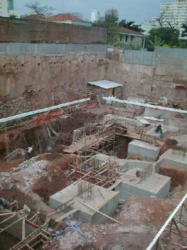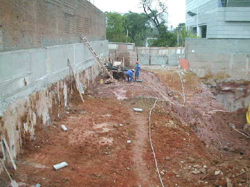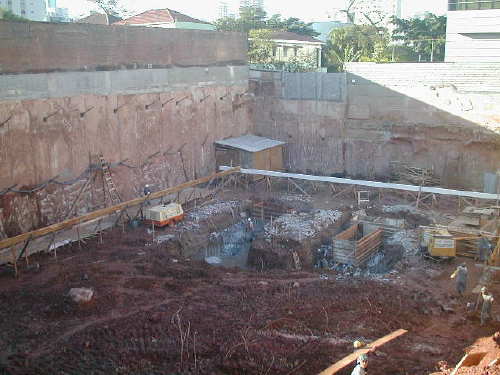 | - Foto em 09/06/05 - Cortina lateral esquerda escavada até o 3o.SS. | |