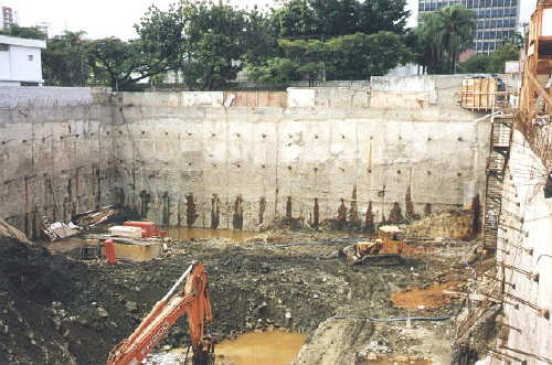 | - Foto em 30/04/00 - Escavação seguindo para o 3o.Sub-Solo. | |