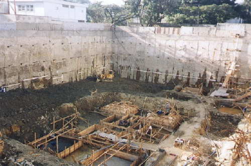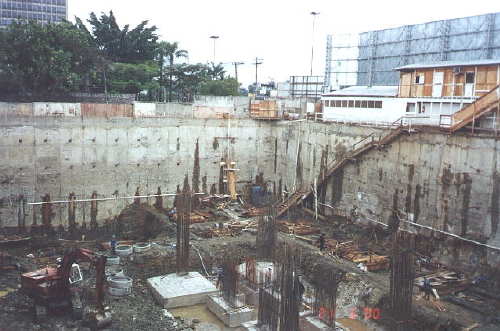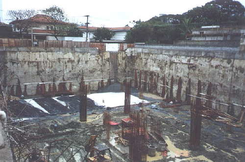 | - Foto em 21/06/00 - Fundação concluída. Serviços de preparação da laje do piso do 3o.Sub-Solo. | |