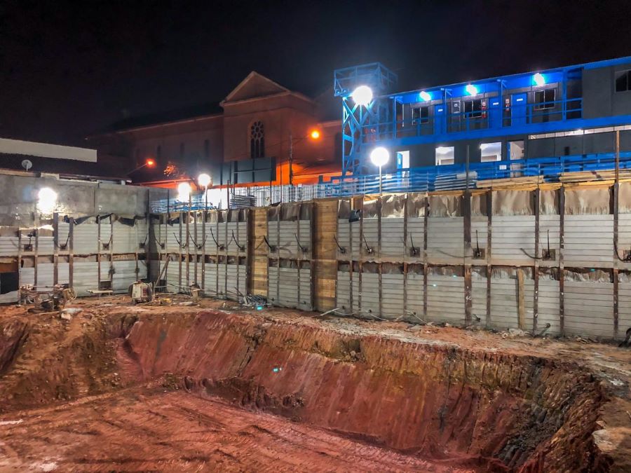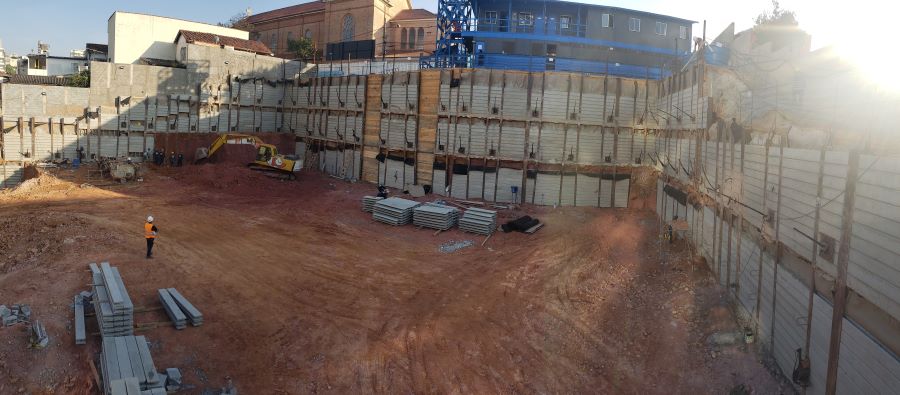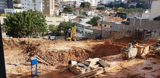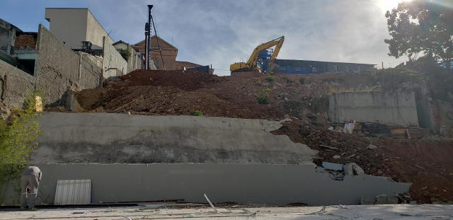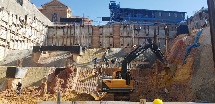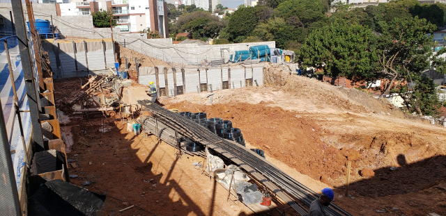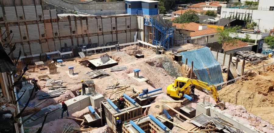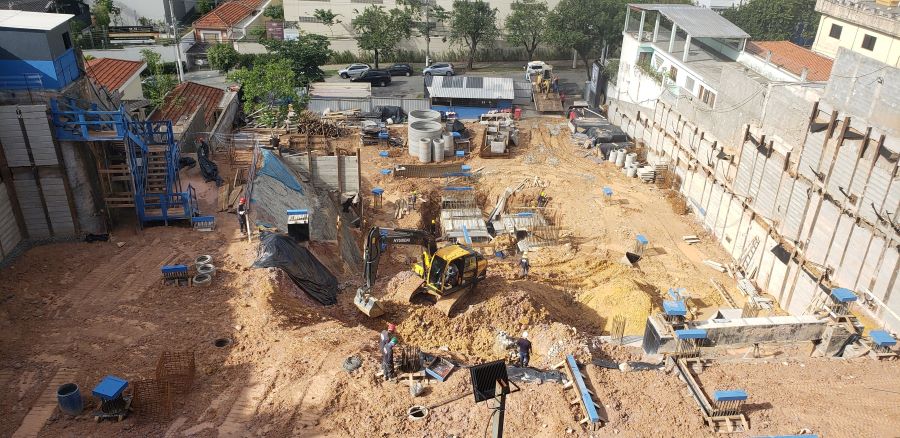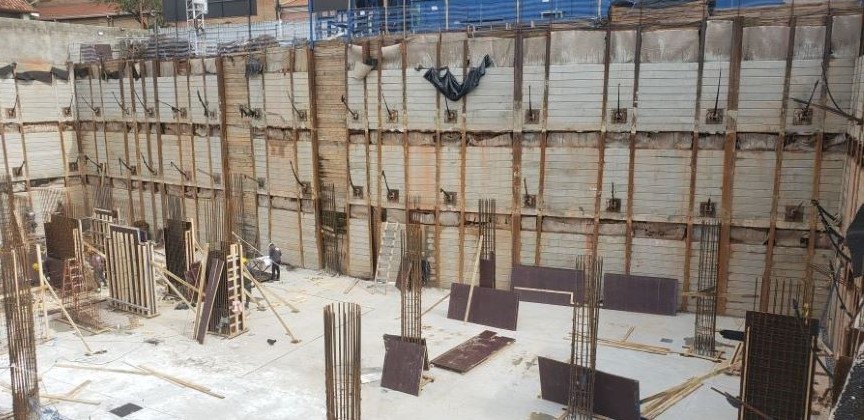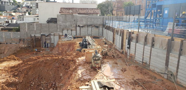 | - Foto em 21/09/2020 - Escavação de blocos e vigas alavancas. Seguindo com estacas HC no 4o e 5o.SS. | |