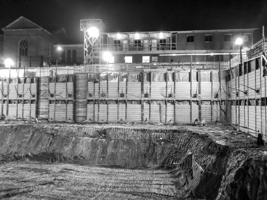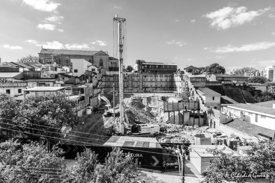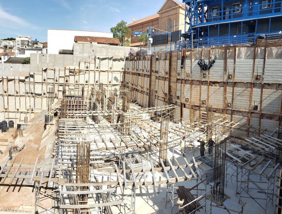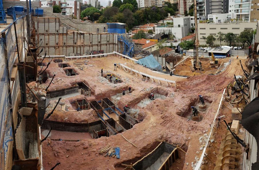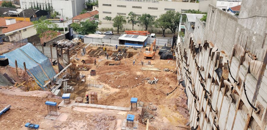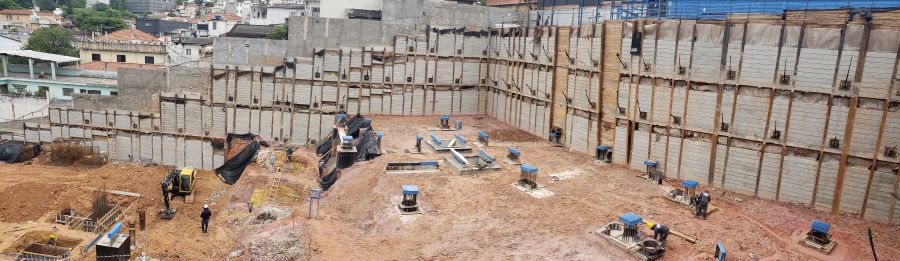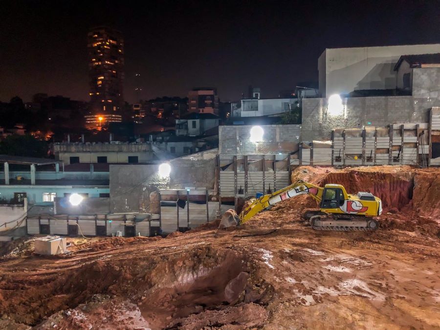 | - Foto em 21/09/2020 - Escavação de blocos e vigas alavancas. Seguindo com estacas HC no 4o e 5o.SS. | |