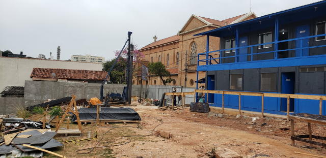 | - Foto em 25/06/2020 - Vista da implantação da obra: ao fundo Rua Mota Pais | |