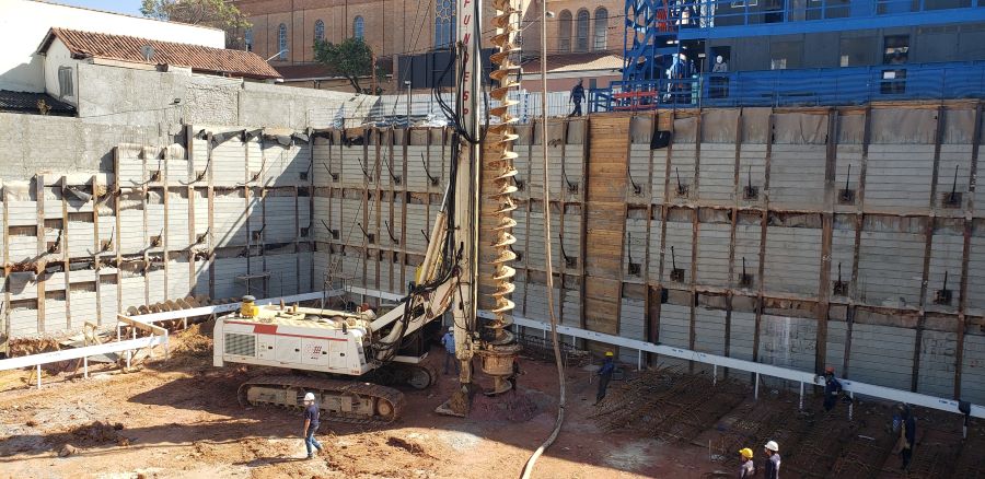 | - Foto em 11/09/2020 - Execução das fundações em Hélice Contínua no 3o.SS. | |