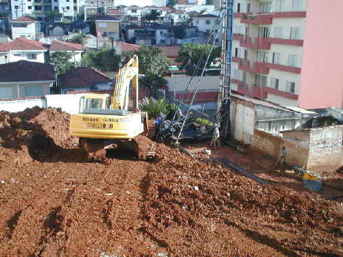 Foto em 02/02/04 - Cravando perfis na periferia. |